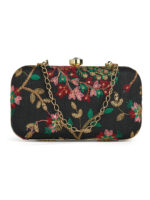 Black & Goldembroidered box clutches Has shoulder strap, 1 main compartment with twist closure