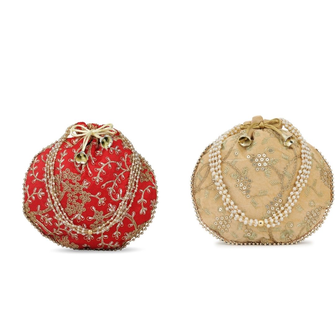 Home W_Bags Potlis PK 2 Combo – Designer Embroidered Potli Bag – Red & Beige