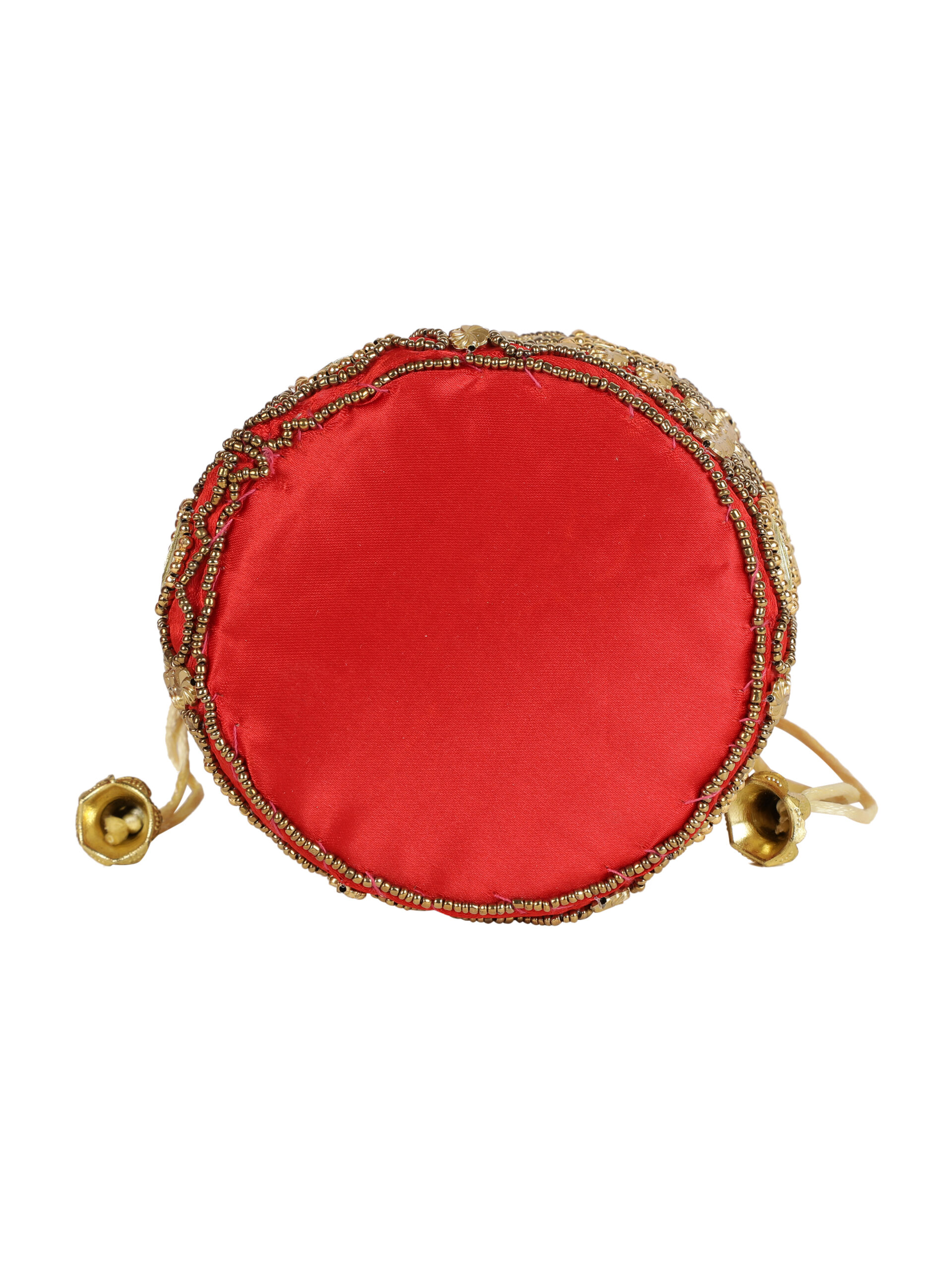 Red and gold-toned embroidered potli clutches Has wrist loop 1 main compartment with drawstring closure Size & Fit Height: Width: