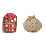 Combo – Designer Embroidered Potli Bag – Golden & Pink