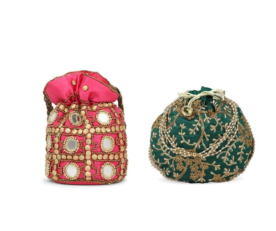 Combo – Designer Embroidered Potli Bag – Red & Green