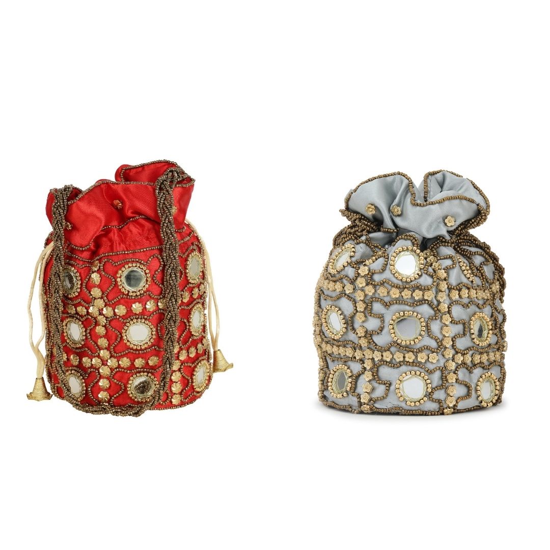 Home W_Bags Potlis PK 2 Combo – Designer Embroidered Potli Bag – Red & White