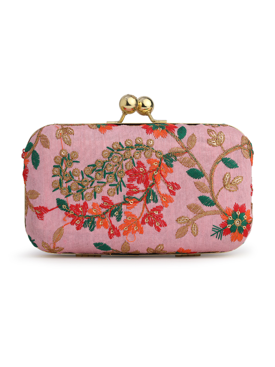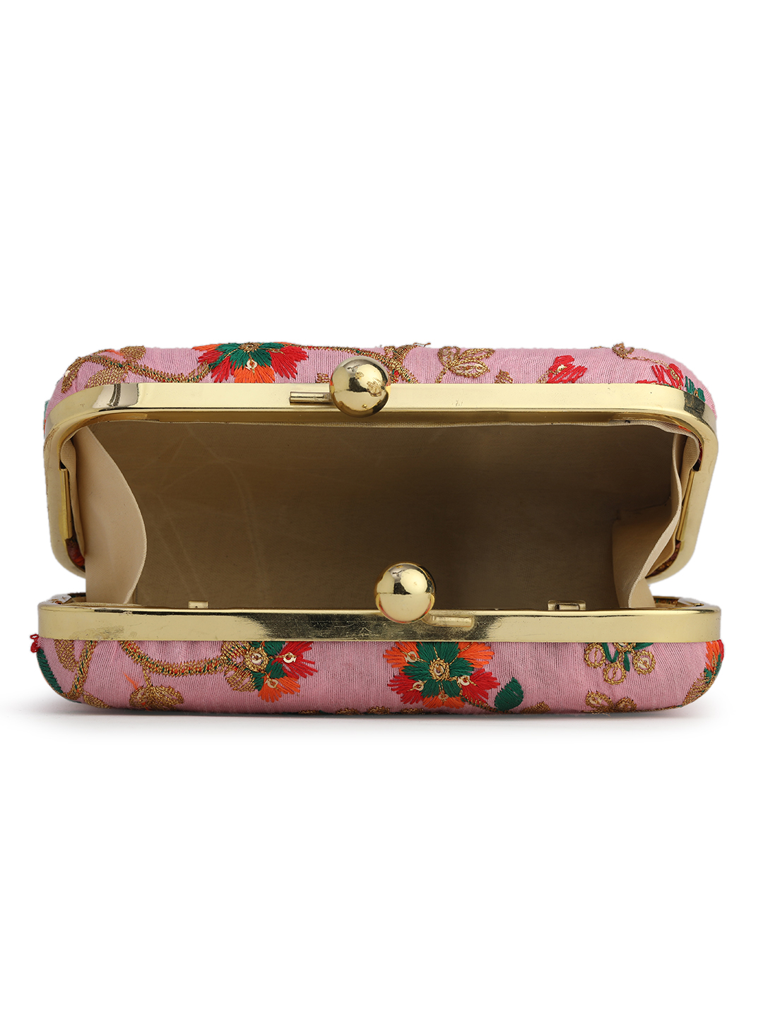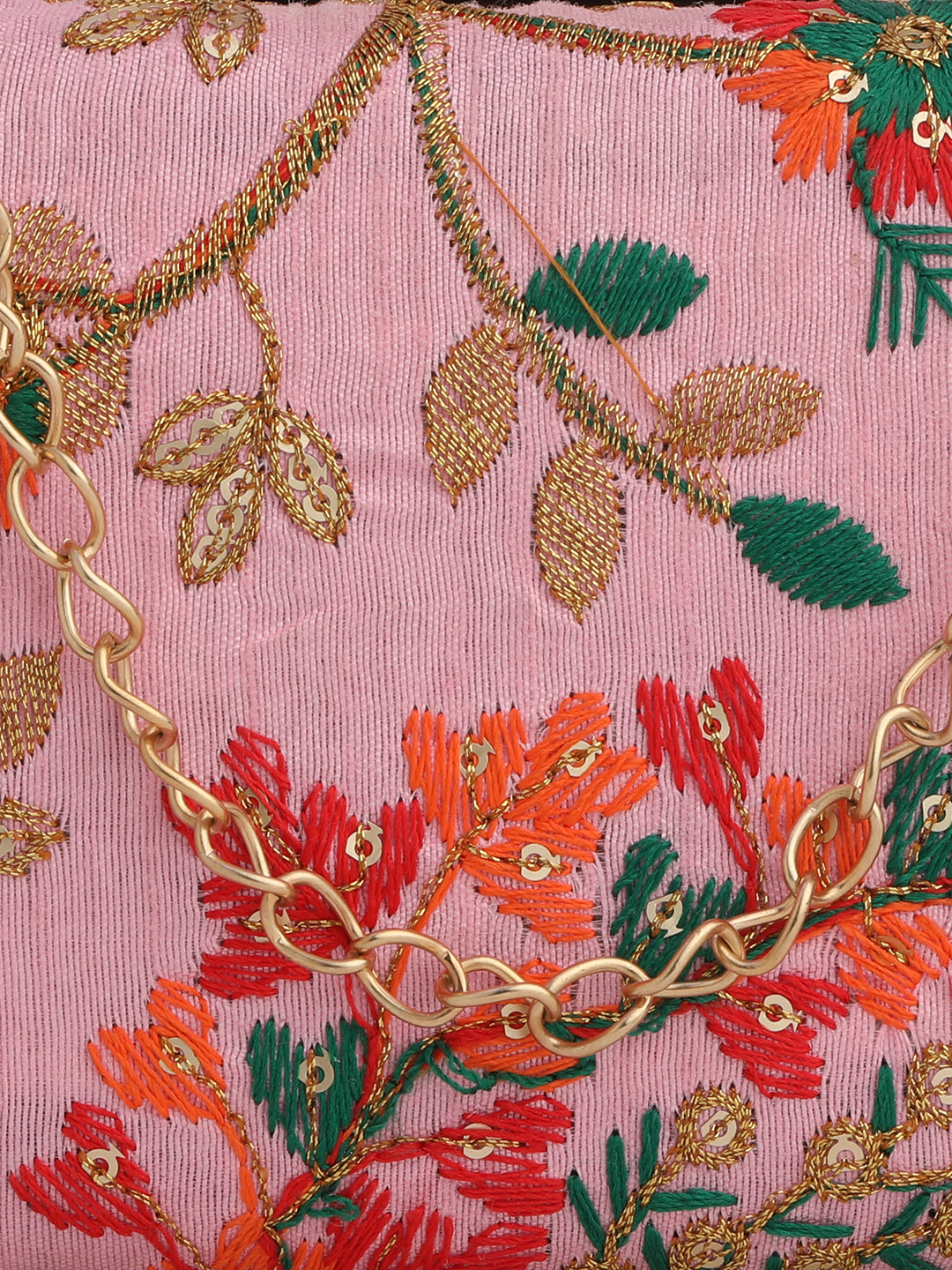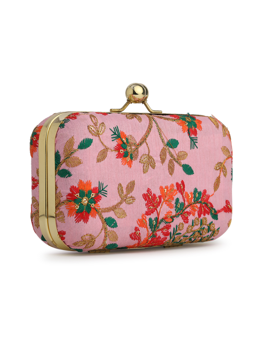 Combo Of Boho Bag And Pink & Gold Embroidered Box Clutches For Girls and womens(01)