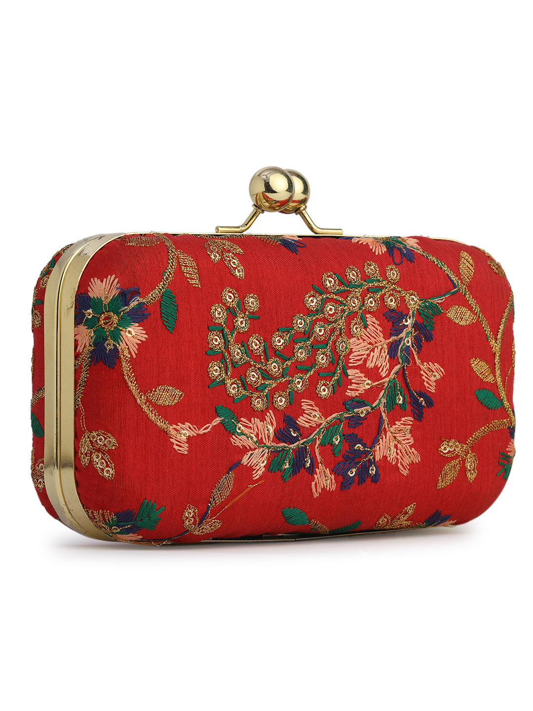Home W_Bags Clutches And Boho Bags Combo Of Boho Bag And Red & Gold Embroidered Box Clutches For Girls and womens