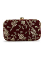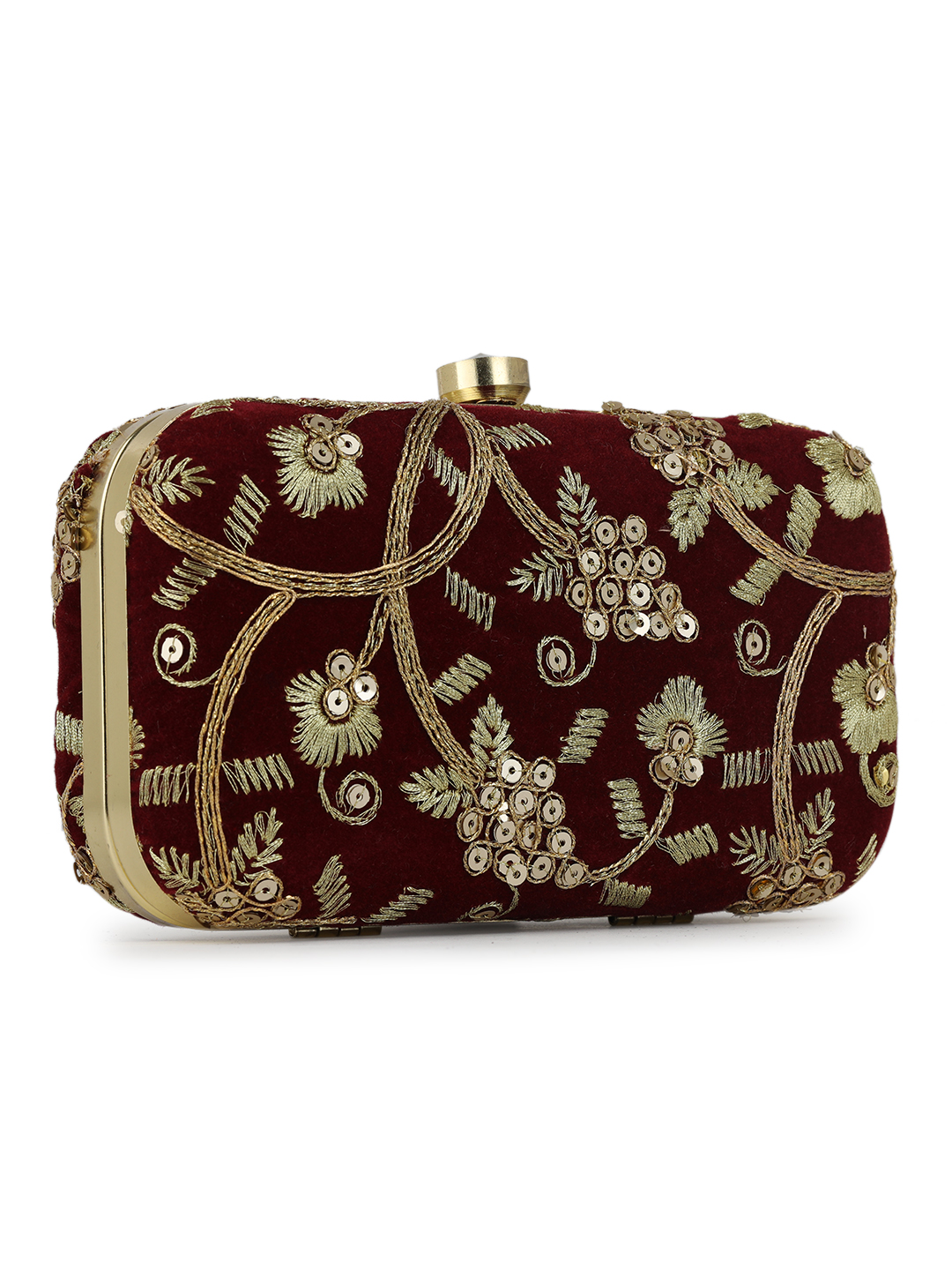 Maroon Embroidered Box clutches, Has gold chain shoulder strap, 1 main compartment with twist closure