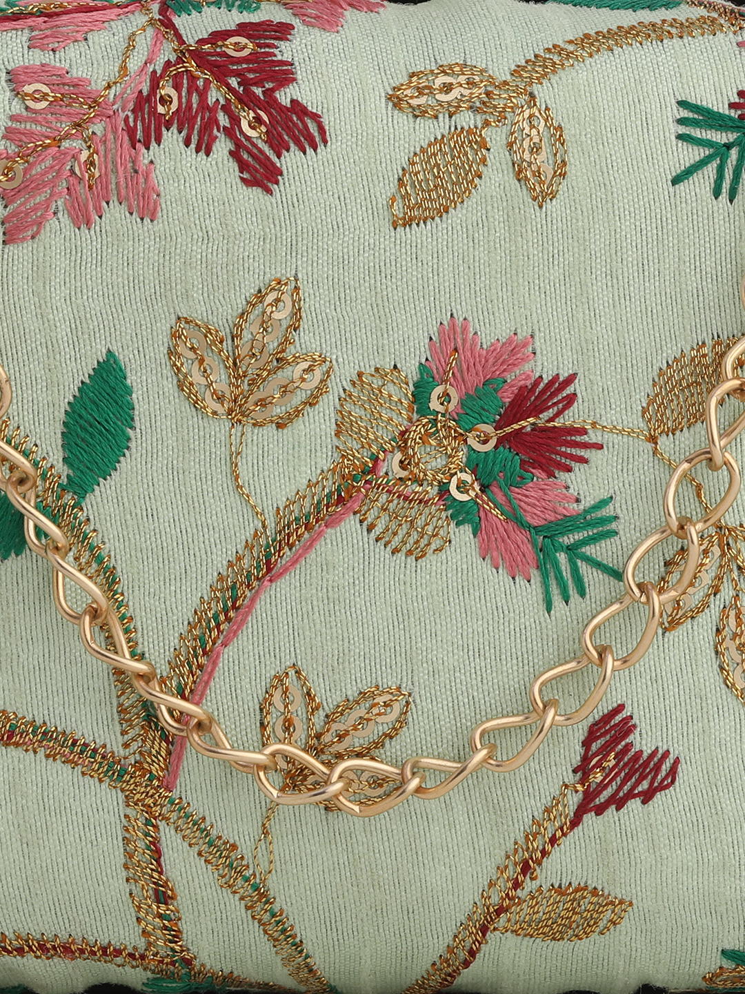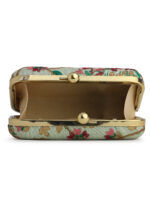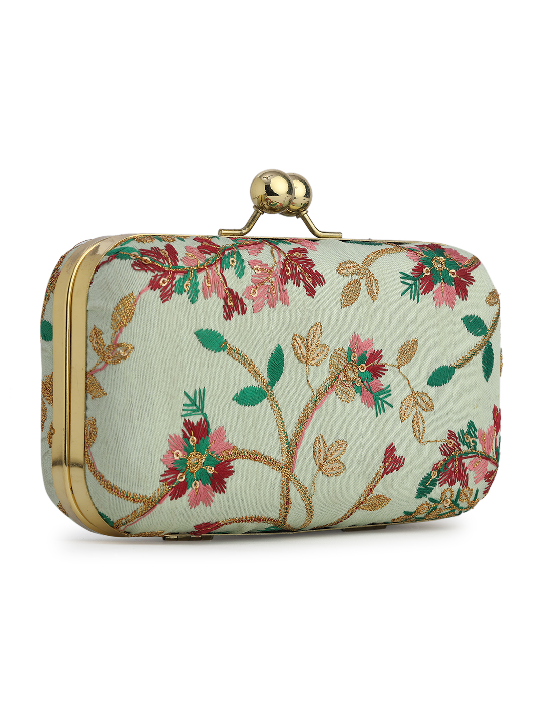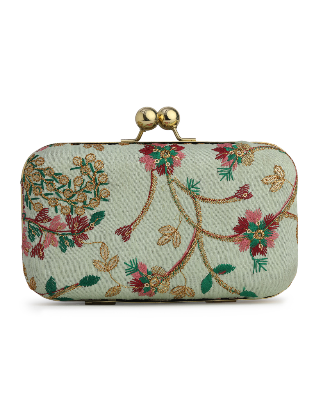 Off White & Gold Embroidered Box clutches, Has gold chain shoulder strap, 1 main compartment with twist closure