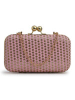 Pink & Gold Embroidered Box clutches, Has gold chain shoulder strap, 1 main compartment with Kiss closure