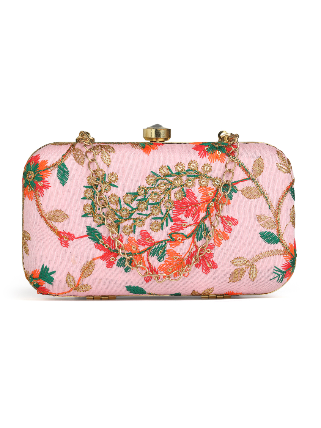 Pink & Goldembroidered box clutches Has shoulder strap, 1 main compartment with twist closure